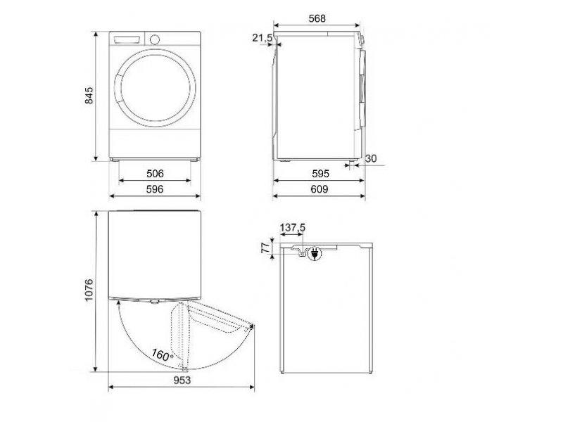 По информации производителя, угол открытия люка составляет 160° — удобен для загрузки объёмного белья. Конденсат можно собирать в съёмный резервуар или подключить отвод в дренаж — оба варианта поддерживаются.
